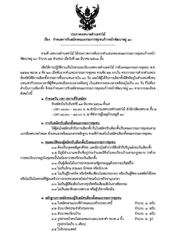 เรื่อง กำหนดการรับสมัครคณะกรรมการชุมชนก้าวหน้าพัฒนาหมู่ 10