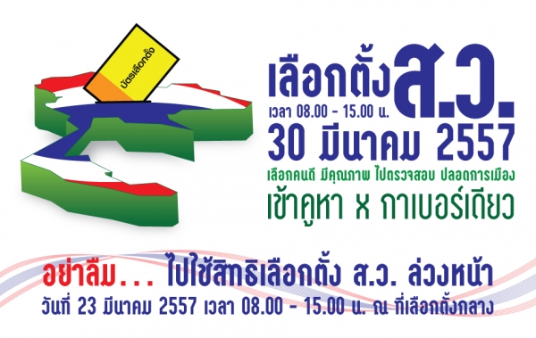สำนักคณะกรรมการการเลือกตั้ง กำหนดให้มีการเลือกตั้งสมาชิกวุฒิสภา หรือ ส.ว. เป็นการทั่่วไป ในวันที่ 30 มีนาคม 2557 ตั้งแต่เวลา 08.00 - 15.00 น. ณ หน่วยเลือกตั้งที่ท่านมีรายชื่ออยู่ และกำหนดให้การเลือกตั้งล่วงหน้านอกเขตจังหวัด ในวันที่ 23 มีนาคม 2557 กกต. จ.กาญจนบุรี ประกาศกำหนดสถานที่เลือกตั้งล่วงหน้า ณ ศาลา 60 พรรษามหาราชินี (โรงยิม) อ.เมืองกาญจนบุรี