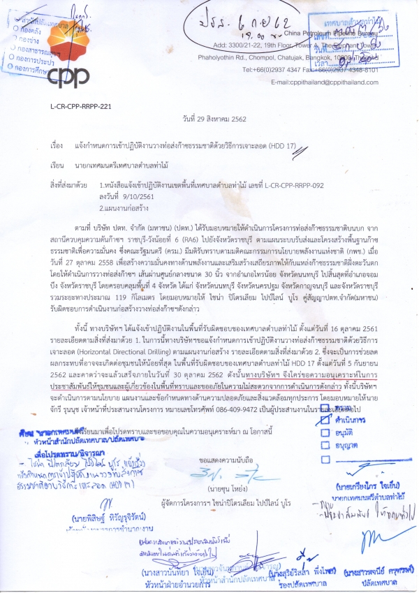 บริษัท ปตท. จำกัด (มหาชน) แจ้งกำหนดการเข้าปฏิบัติงานวางท่อส่งก๊าซธรรมชาติด้วยวิธีการเจาะลอด (HDD 17)