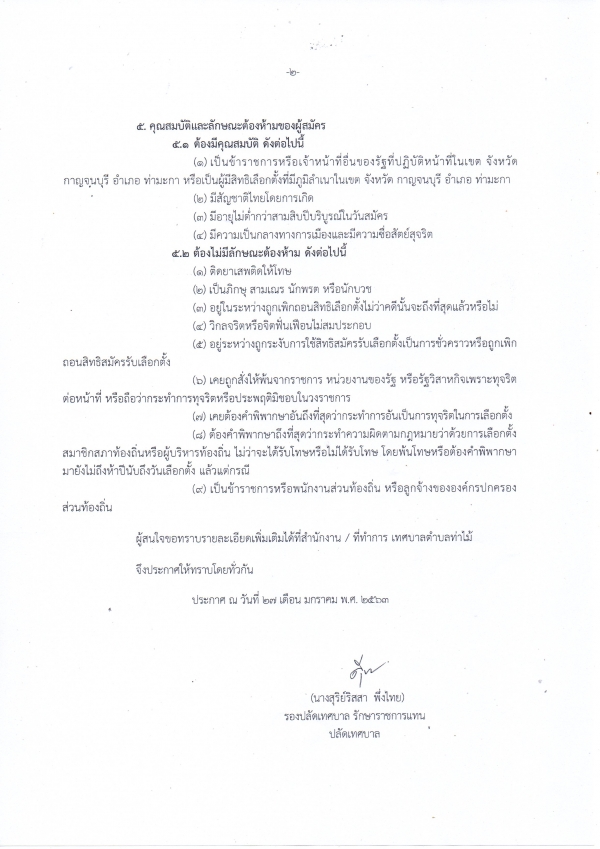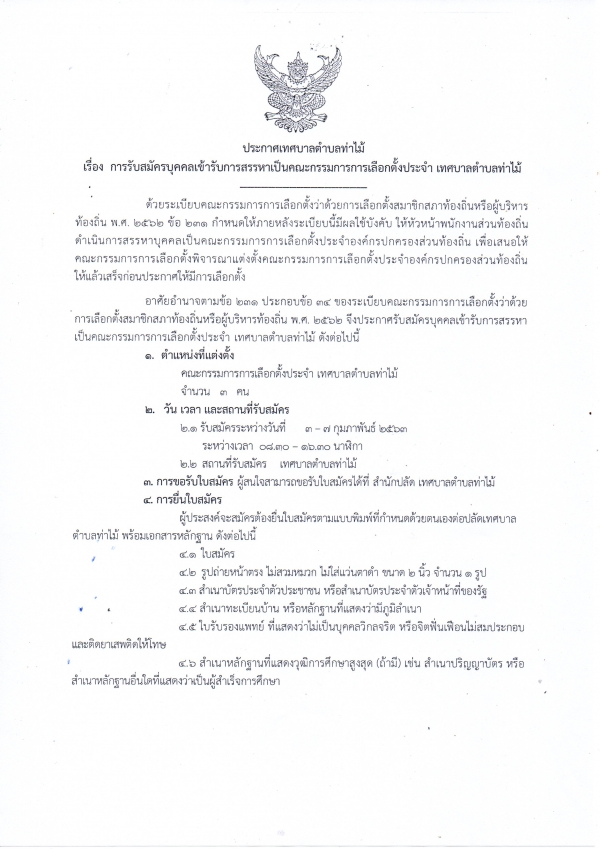 เรื่อง การรับสมัครบุคคลเข้ารับการสรรหาเป็นคณะกรรมการการเลือกตั้งประจำ เทศบาลตำบลท่าไม้