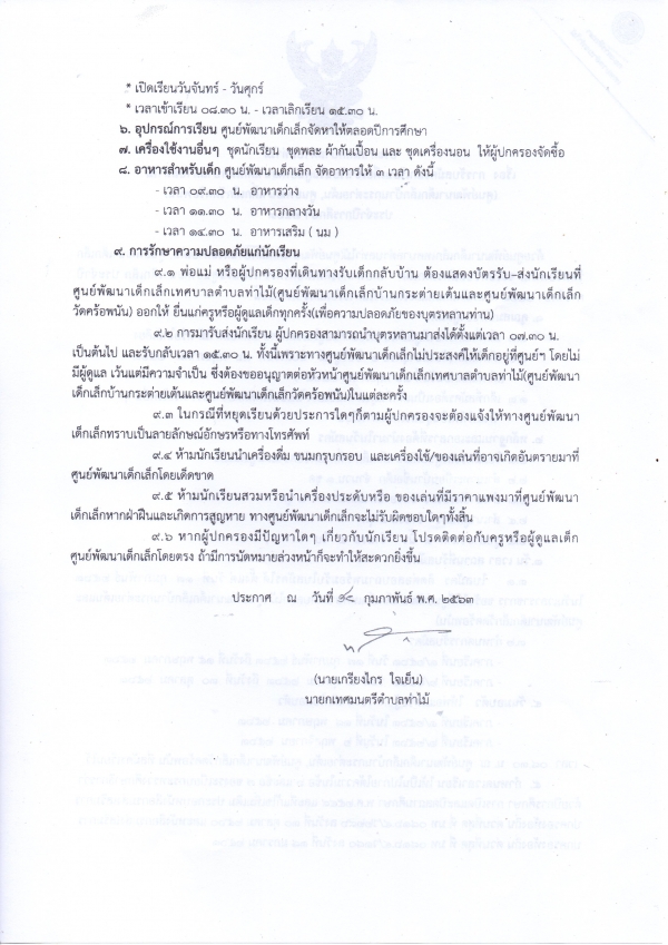 - อุปกรณ์การเรียนศูนย์เด็กเล็กเป็นผู้จัดหาให้