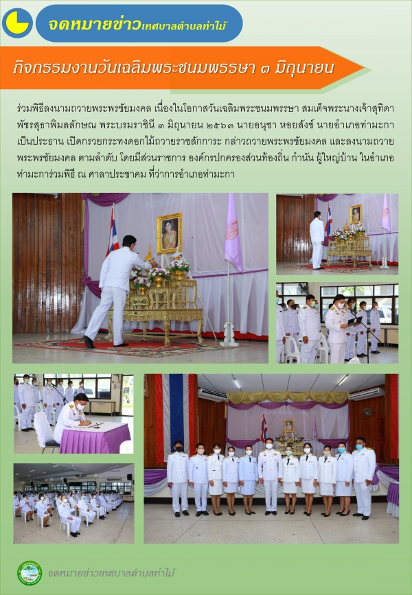 เรื่อง ร่วมพิธีลงนามถวายพระพรชัยมงคล เนื่องในโอกาสวันเฉลิมพระชนมพรรษา สมเด็จพระนางเจ้าสุทิดา พัชรสุธาพิมลลักษณ พระบรมราชินี ๓ มิถุนายน ๒๕๖๓