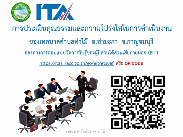 โดยตอบแบบการรับรู้ของผู้มีส่วนได้ส่วนเสียภายนอก (EIT) ได้ที่ https://itas.nacc.go.th/go/eit/etsyef หรือ QR CODE