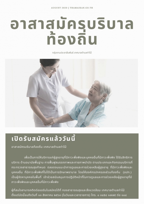เทศบาลตำบลท่าไม้ เปิดรับสมัครอาสาสมัครบริบาลท้องถิ่น