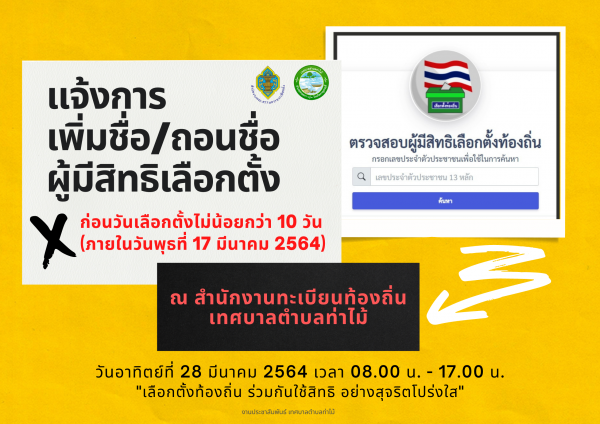 เรื่อง การเพิ่มชื่อ - ถอนชื่อ ผู้มีสิทธิเลือกตั้ง