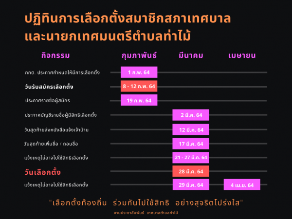 นรับสมัคร ประกาศรายชื่อผู้สมัคร ประกาศบัญชีรายชื่อผู้สมัคร เพิ่มชื่อ/ถอนชื่อ และวันเลือกตั้งสมาชิกสภาเทศบาลและนายกเทศมนตรีตำบลท่าไม้