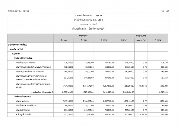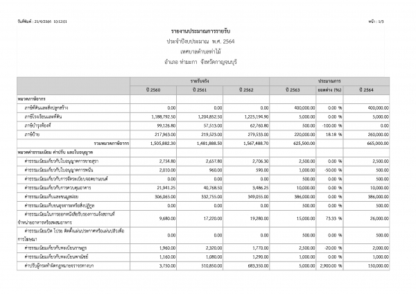 เรื่อง รายงานประมาณการรายรับ-รายจ่าย ประจำปีงบประมาณ 2564