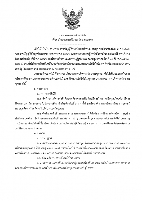 เรื่อง นโยบายการบริหารทรัยากรบุคคล