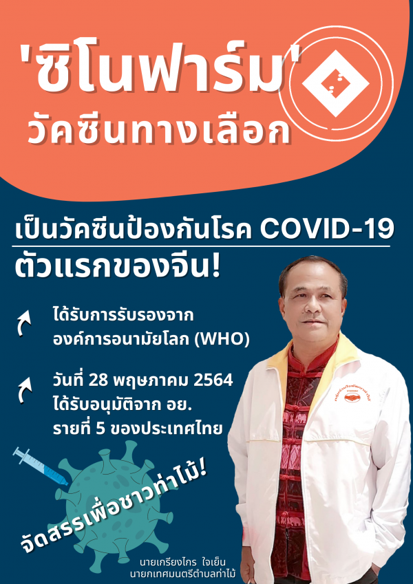 "วัคซีนป้องกันโรคโควิด-19 ของบริษัทซิโนฟาร์ม (Sinopharm) จากประเทศจีน นับว่าเป็นวัคซีนทางเลือกชนิดล่าสุดที่มีการนำเข้ามาในประเทศไทย ทำให้ปัจจุบันมีวัคซีนสัญชาติจีนถึง 2 ชนิดที่องค์กรของรัฐจัดสรรให้แก่ประชาชน