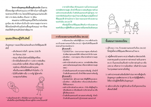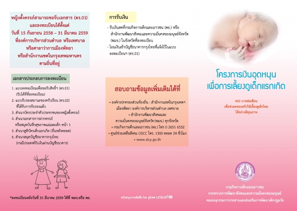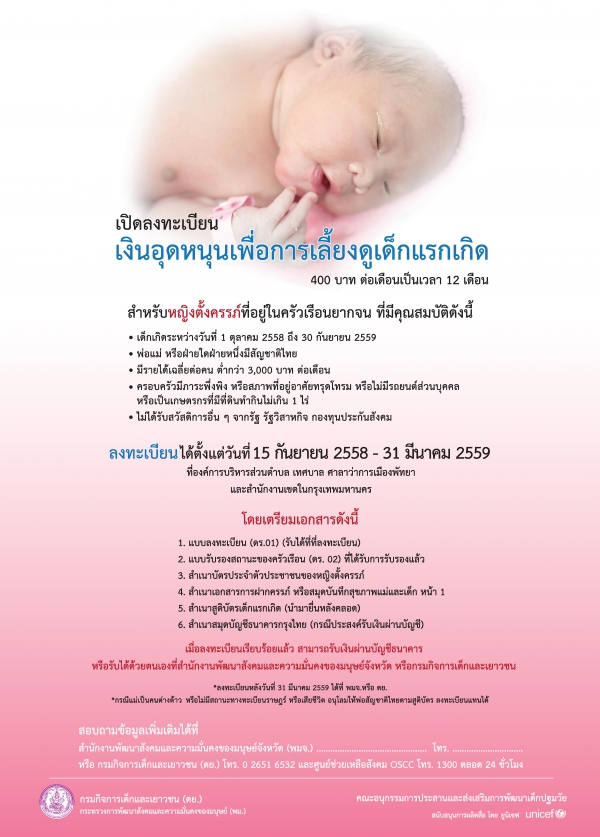 ลงทะเบียนเพื่อขอรับสิทธิ์ตามโครงการเงินอุดหนุนเพื่อการเลี้ยงดูเด็กแรกเกิด