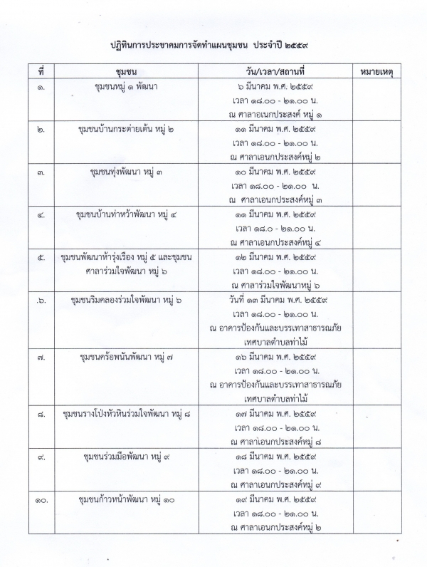 ปฏิทินการประชาคมการจัดทำแผนชุมชน ประจปี ๒๕๕๙