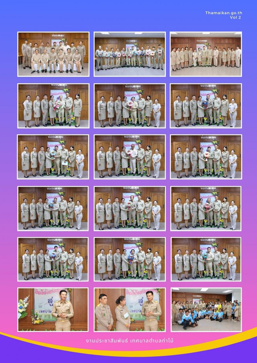 นางสาวพีรญา ปิ่นทอง รองปลัดเทศบาล รักษาราชการแทนปลัดเทศบาลตำบลท่าไม้ นำคณะข้าราชการและเจ้าหน้าที่ ร่วมแสดงความยินดีกับนายพรรษา สายทอง นายกเทศมนตรีตำบลท่าไม้ พร้อมด้วยสมาชิกสภาเทศบาล ทั้ง 2 เขต